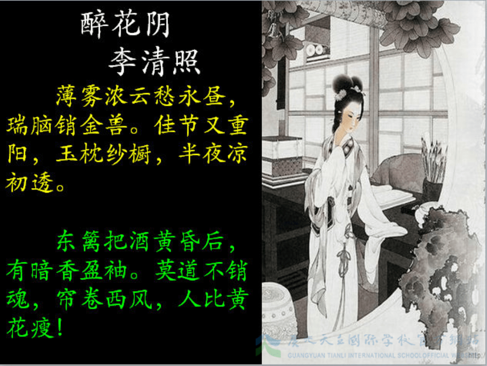 晨诵时,李老师给孩子们讲解了重阳节的来历和习俗,诵读了关于重阳节的一些诗词。当孩子们读到“独在异乡为异客,每逢佳节倍思亲”、“佳节又重阳,玉枕纱橱,半夜凉初透。”时,深深感受到了家人同游不能的伤感。