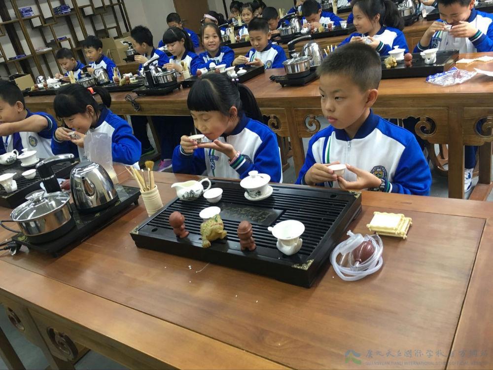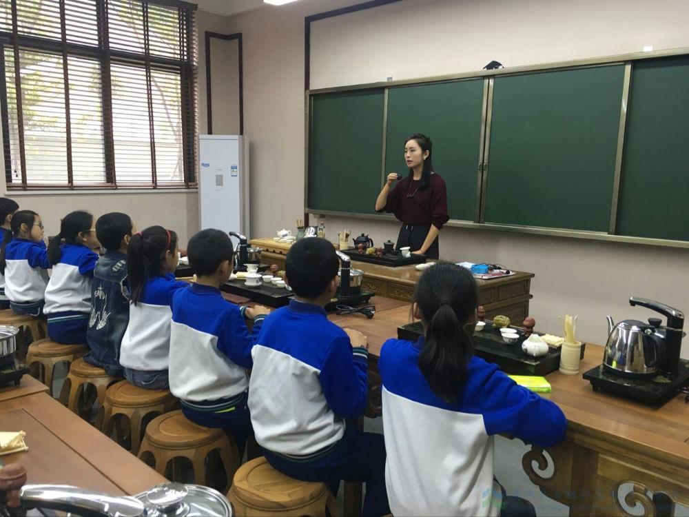 观赏菊花和饮菊花酒也是重阳节的一项重要庆祝方式。不能饮菊花酒,孩子们便用饮菊花茶来代替。趁此机会,何老师便在学校茶艺室为大家讲解茶艺,品尝菊花茶。
