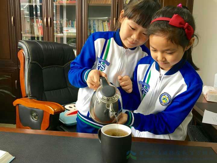 好茶怎能独享呢?敬老尊师,时刻在孩子们心中荡漾,孩子们自告奋勇的拿着泡好的茶给每一位老师送去。