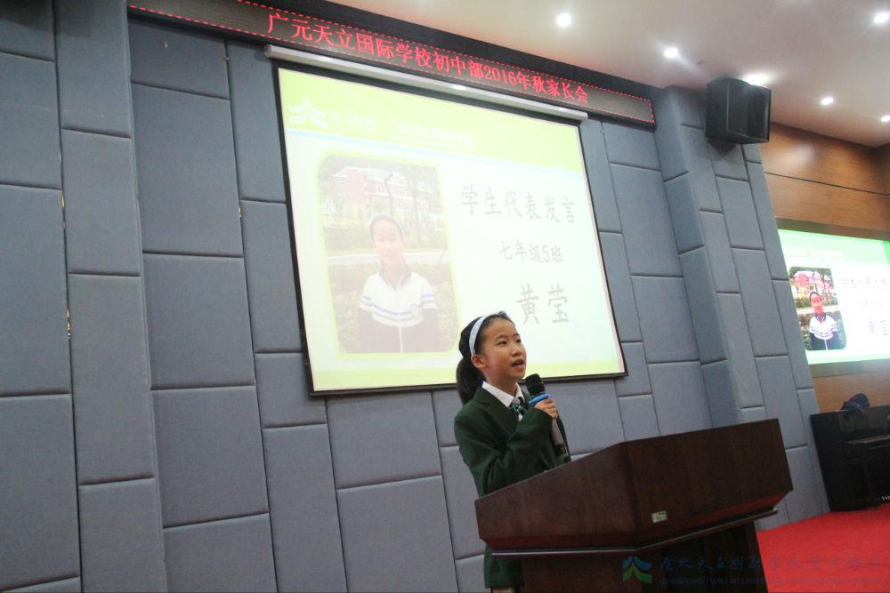 预备年级和初一年级的集体家长会由来自预备年级的姚涵予和初一年级 的王煜阳主持,总校长黄永贵和初中部校长胡柏林出席了会议,预备2班的杨皓岚同学和初一5班的黄莹同学给大家分享了自己进入天立以来的学习生活,并鼓励大家要有“会当凌绝顶”的勇气,直面“成功无捷径可走”的“困境”。预备4班易霄同学的爸爸和初一5班的孙艺同学的妈妈作为家长代表发言,他们表示正是天立优美的校园环境和雄厚的师资以及先进的办学理念,让他们毅然决定将孩子送到天立读书,把孩子放在天立他们放心!
