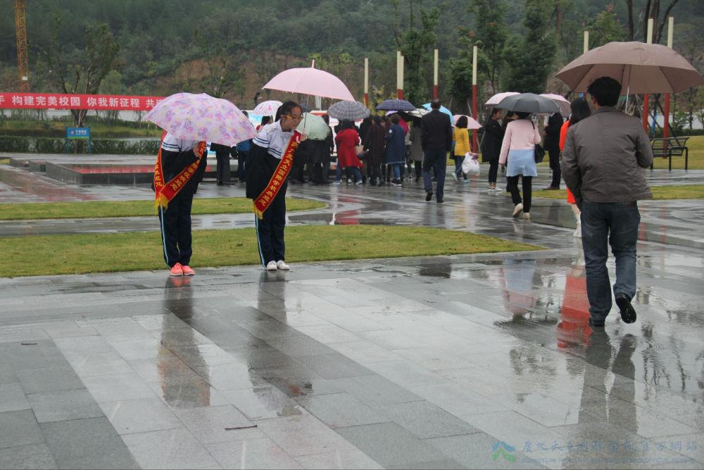考虑到一些家长第一次到校,同时每个年级的参会地点不一样,学生发展部一是制作了引导的海报,二是召集初中部礼仪队的孩子们做一个引导。虽然略有小雨,天微微凉,但引导的海报以及礼仪队的孩子们却给到校的家长带来了一丝丝温暖。