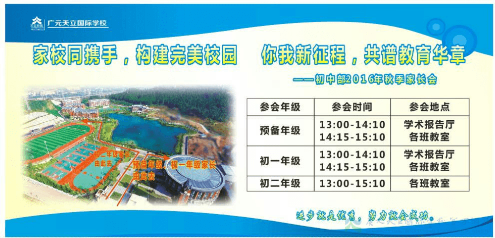 2016年10月14日,广元天立初中部迎来了新学年第一次家长会,经过初中学生发展部精心策划和周密安排,在各班主任和科任老师的积极配合下,各年级的家长会顺利结束。在此,我们一起用11个“一”来回顾一下家长会那些背后的故事吧。
