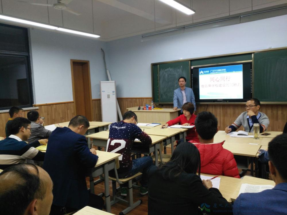 10月16日晚,广元天立国际学校初一年级在张义华主任的带领下召开了第一学月总结会议。大家相互理解,形成了有向心力团队的同路人,全体教师正以饱满的工作热情在教学工作中高效运转,为打造品牌学校建设的目标而贡献自己的力量。