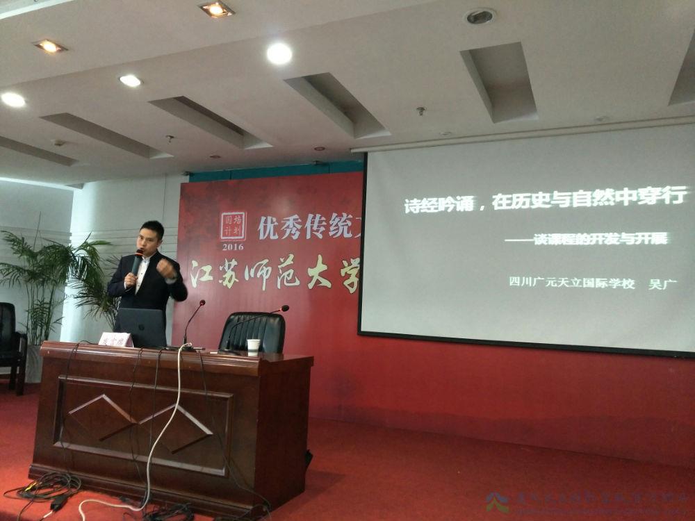 在最后两天培训会上,来自广元天立国际学校的吴广老师就课程开发与开展做了题为“诗经吟诵,在自然和历史中穿行”的经验交流。吴广老师的课程体系,得到在场所有老师的高度好评。
