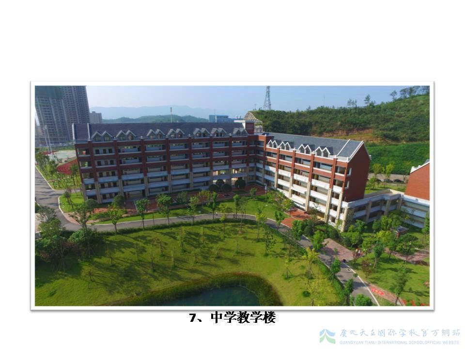 广元天立国际学校是广元市委市政府为满足广大人民群众日益增长的对高端优质教育的需求,通过招商引资,由神州天立教育集团斥资4.5亿元创办的一所集幼儿园、小学、初中和高中于一体的高起点、高规格、高品位的现代化寄宿制学校。学校为民办公助性质,是广元市教育局直属学校,地处广元城区,依山傍水,环湖而建,占地280亩,将自然、庄重、优雅、高贵的欧式英伦建筑设计风格与中国古典园林设计理念完美融合,是中国最美山水校园、湖畔校园、生态校园之一。