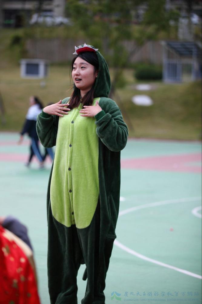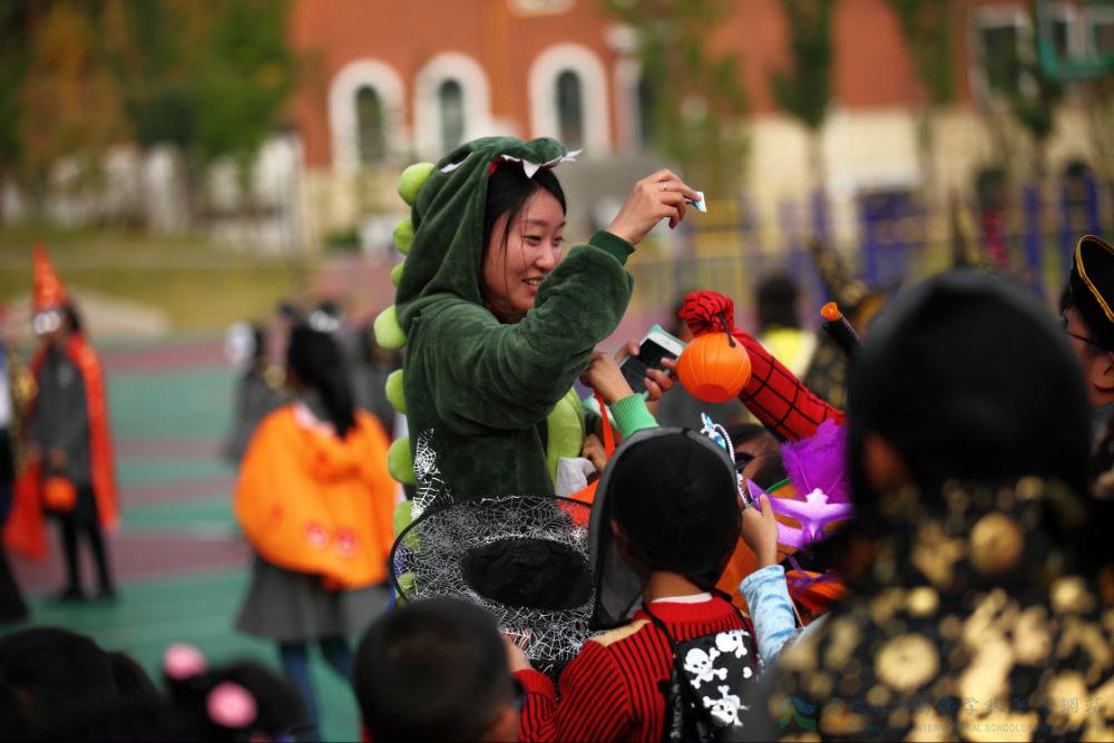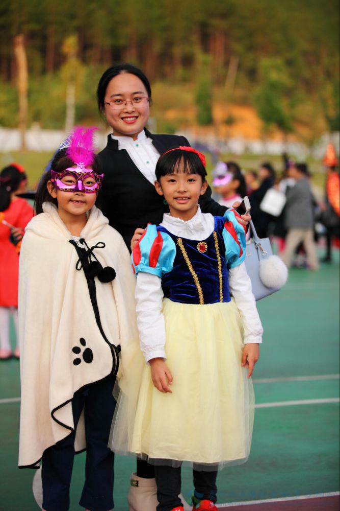 瞧,老师们也穿上了各式各样的万圣节服饰,为万圣节营造气氛,她打扮成了一个怪兽!