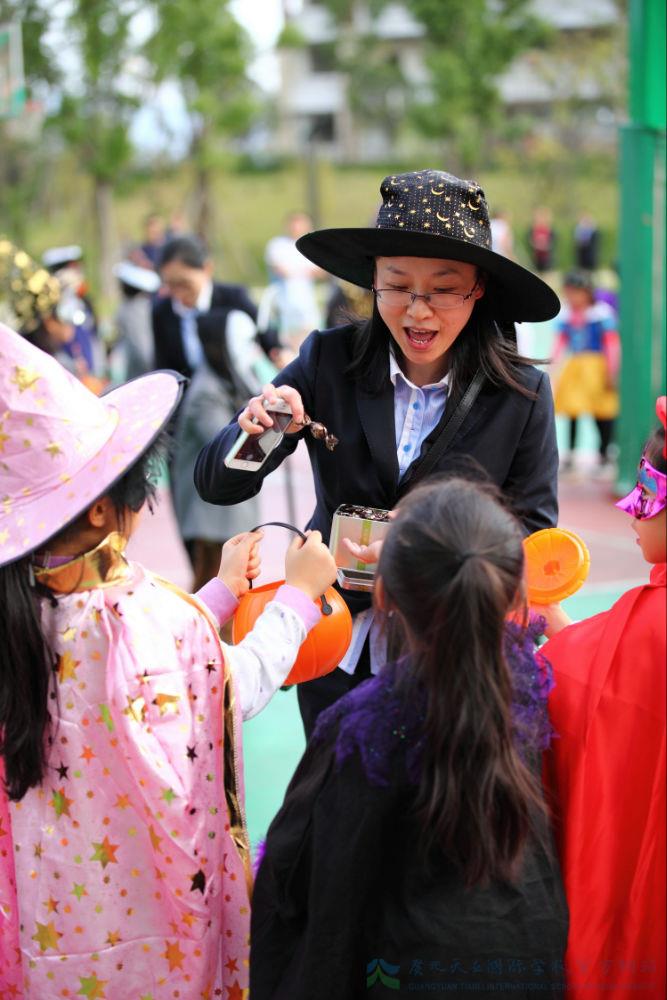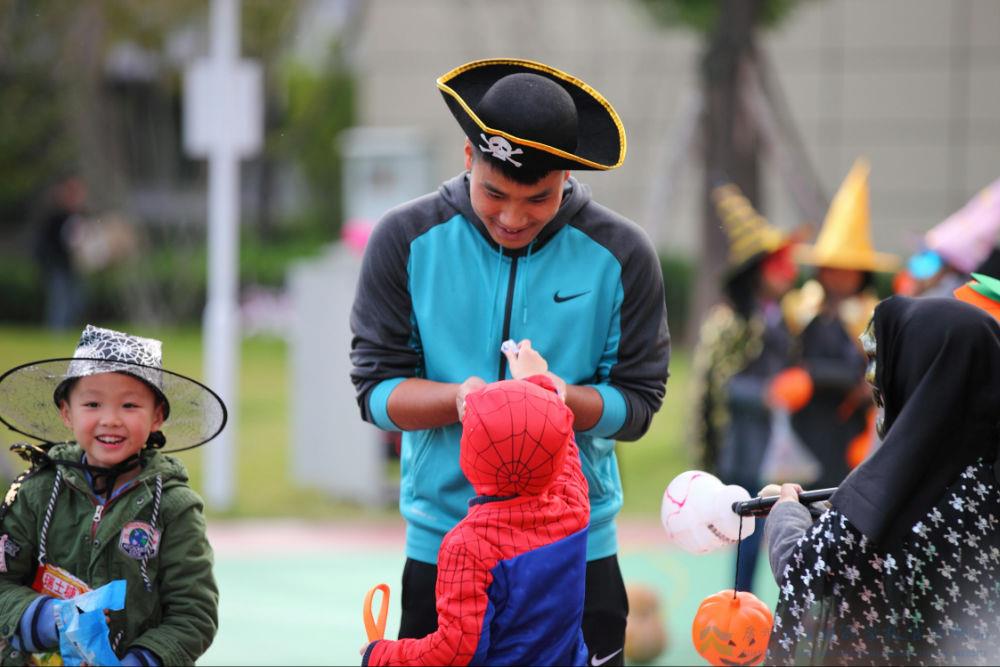 老师们也纷纷开始了trick or treat! 来来来,王老师喂你一颗糖。