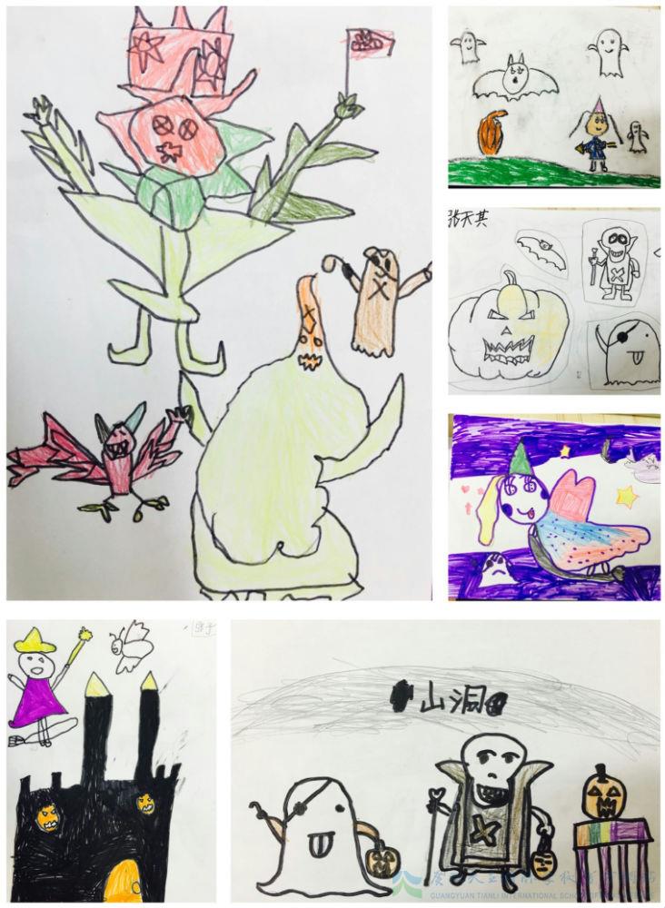 我们不仅做了南瓜灯,我们还画了万圣节呢。快来看看一年级小萌娃的万圣节大作!