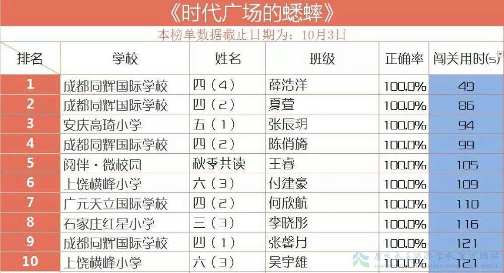 天立小学秋季共读闯关英雄榜