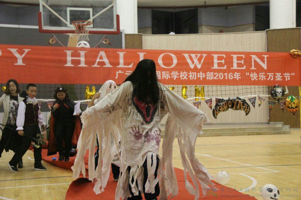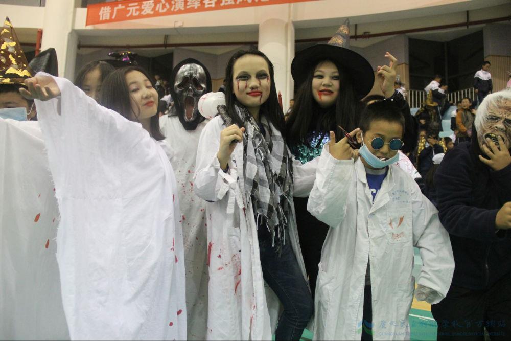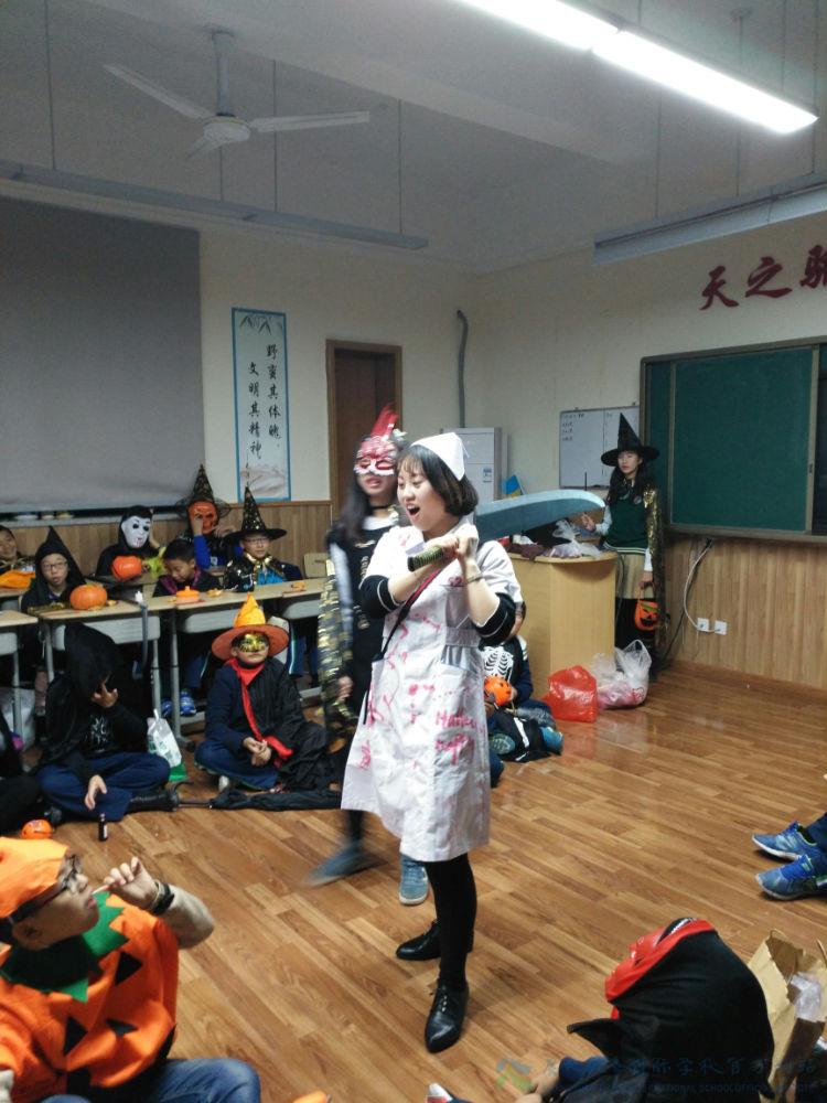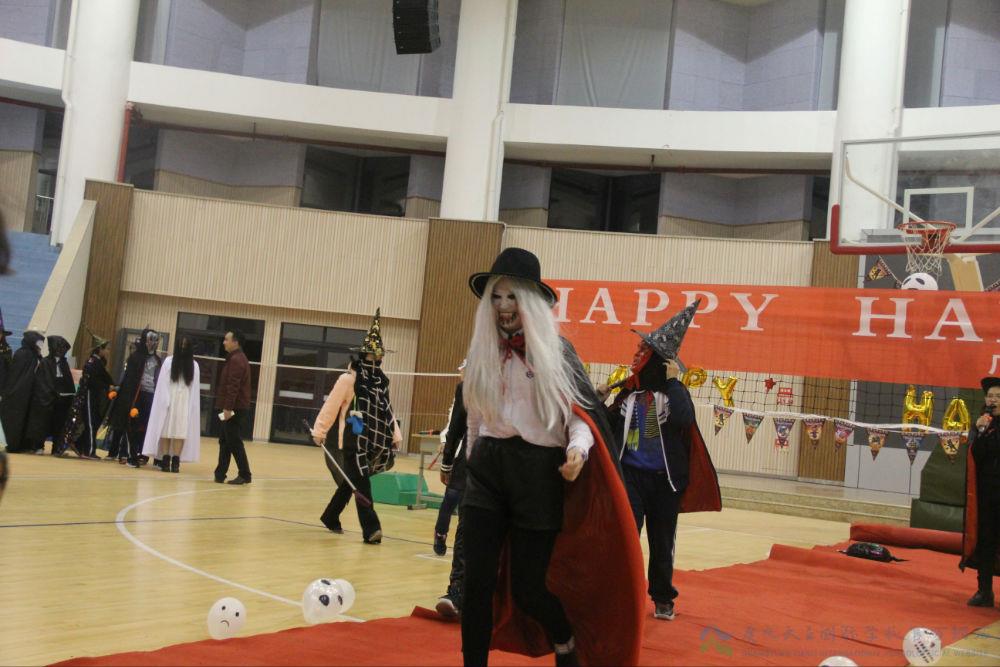 为了不辜负同学们的长久期待,每个班级的教室早已为同学们搭好舞台,等着各路“妖魔”尽展风姿。一时间,鬼魂、食尸鬼、巫婆、蝙蝠、黑猫、猫头鹰、精灵、僵尸、骷髅和恶魔以及虚构人物如吸血僵尸、科学怪人纷纷登台亮相,大有“妆”不惊人死不休的节奏。台下的同学看的是尖叫连连、心跳加速,更有胆小的女生不敢直视舞台。