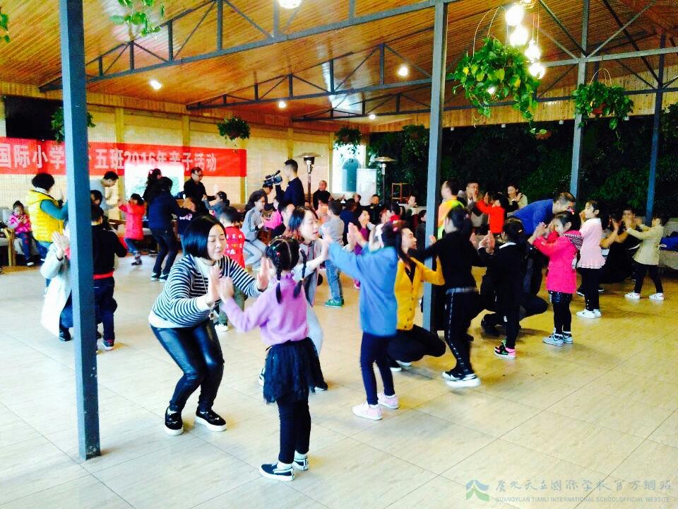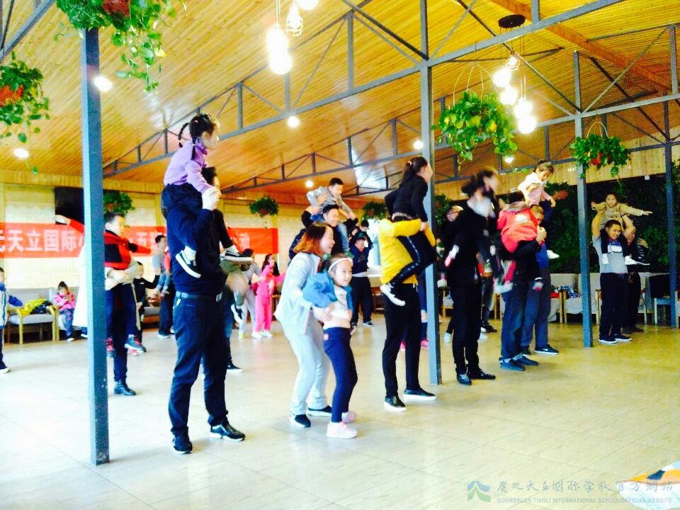 活动的开始是由一五班教委会邀请的果冻哥哥带领着小朋友做起了室内热身游戏。活动中30多个小朋友和爸爸妈妈们一起运动。