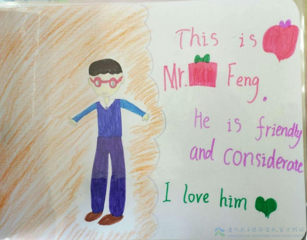 我们的副班主任,也是Chinese teacher,付老师是我们班的‘高大帅’,需要攀高的活全由他来干。除了课内知识,他还教我们演讲、吟诵……他是我们的知心大哥哥。