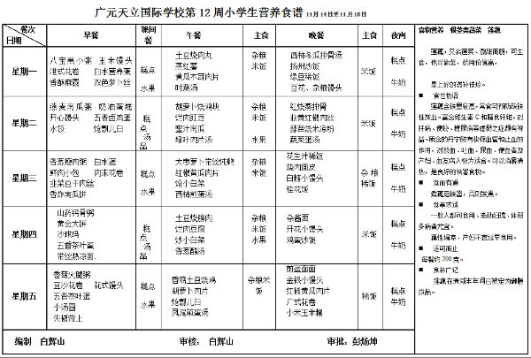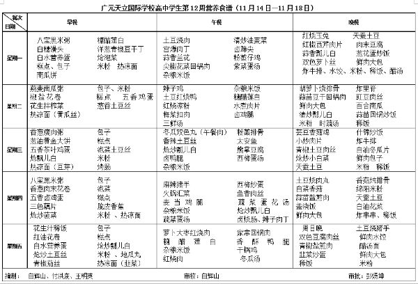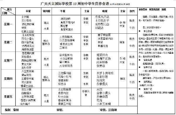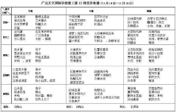 广元天立国际学校2016年秋季第12周营养食谱