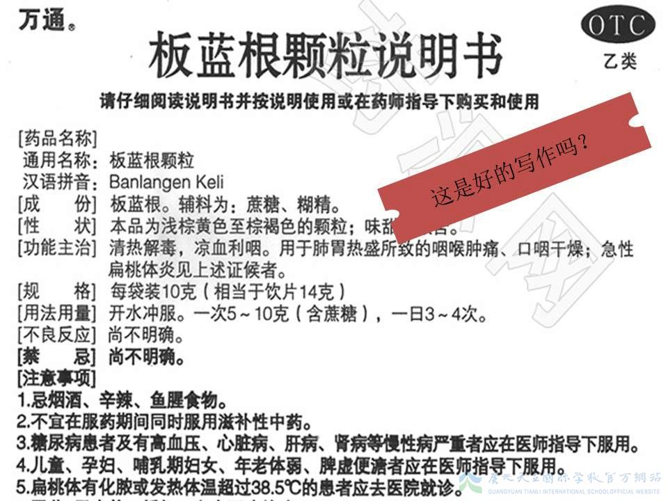 看到这个药品说明书出现在课堂上,同学们笑傻了。可老师告诉他们:这就是好的写作。
