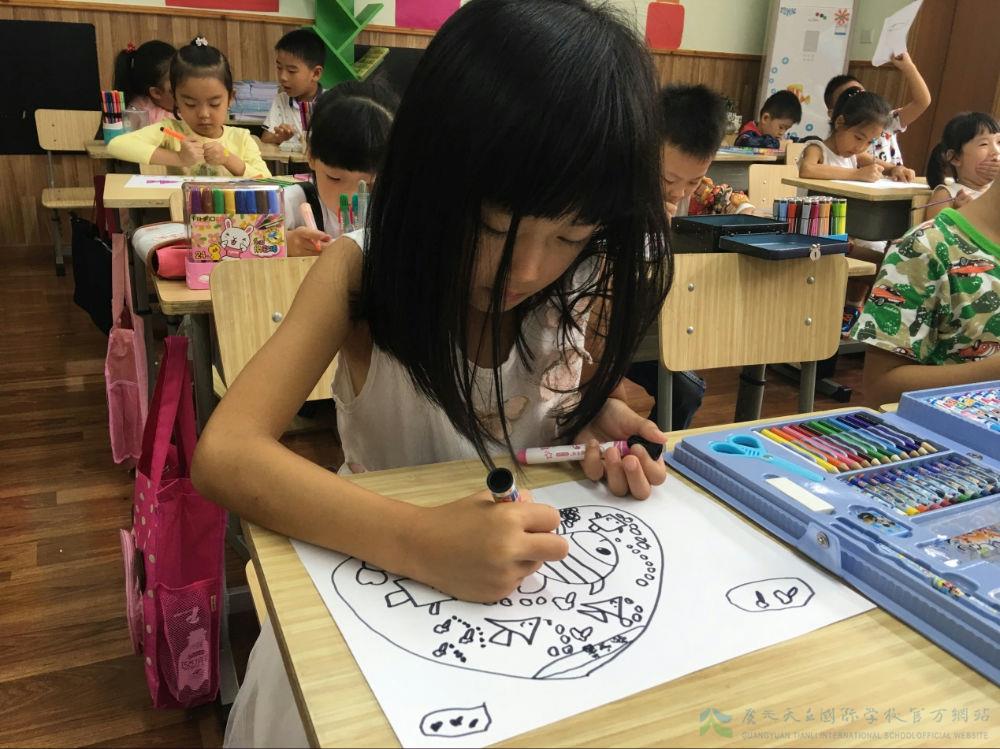 因此,天立小学一年级的美术课程把线描作为孩子创作的方式,其特点就是根据儿童的心理与个性及表现的手段来辨别作品的质量,从而了解孩子的个体发展需求。而如果把作品与实物的相似度、比例分配作为衡量一年级孩子绘画质量的标准,就很容易扼杀儿童最真实的天性。一幅好的儿童线描作品,首先要求孩子做到线条流畅;另一方面,要看是观察细致,画出了对象特征,但不在于面面俱到。现在,让我们一起去看看一年级孩子的彩色世界吧!