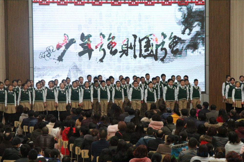 典礼以“少年强 中国强”开篇,“少年智则国智,少年富则国富,少年强则国强,少年独立则国独立,少年自由则国自由,少年进步则国进步,少年胜于欧洲则国胜于欧洲,少年雄于地球则国雄于地球。”初一年级同学激昂豪迈的声音回荡在整个体育馆上空,瞬间激发了同学们的荣誉心、责任心。