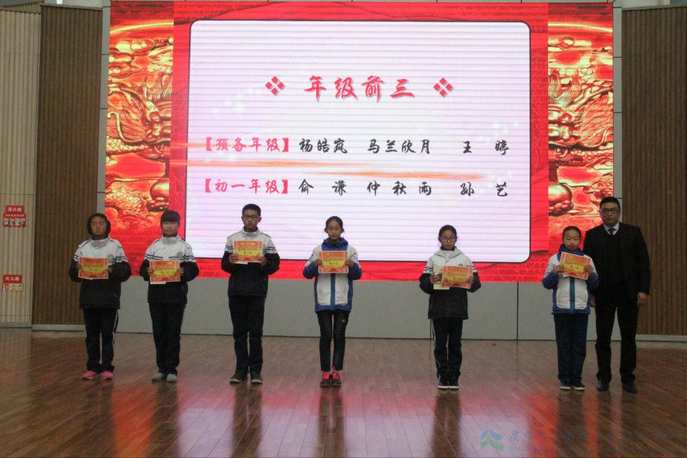 年级表彰紧随其后。预备、初一各年级在期中考试中取得佳绩的同学昂首阔步走上舞台,用傲人的成绩回报台下一直与他们风雨同舟、默默关怀他们的父母。还是学生的我们,没有其他表示感恩的方式,唯有以优异的成绩来报答你们数十年如一日的付出!