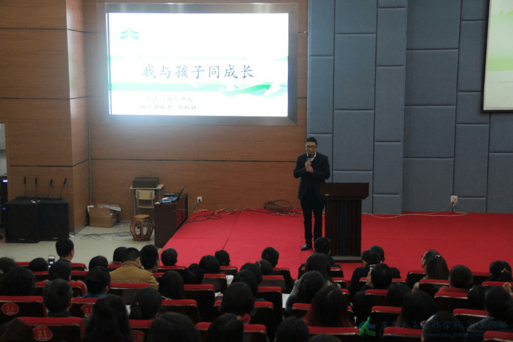 随及所有家长一起,参加了胡校长以“与孩子同成长”的主题讲座。讲座先以犹太民族、大和民族和英格兰为例介绍了国外的家庭教育,从中华民族的智慧里寻找家庭教育的源头。接着指出了现代家庭教育的问题:空心病、精致的利己主义等。胡校长恳切的说:“无论父母有多大的成就,孩子的教育失败,整个人生就失败,家长要与孩子共成长!”随后,他以人的终极价值目标开始剖析,分别从学会学习、认识自己、了解世界、感受宇宙、自由生活五个方面与家长们交流了如何有效地开展家庭教育,最后,胡校长以家校携手、共育英才做结,呼吁家长朋友们走进孩子们的心灵,与学校一起为孩子的成长成功保驾护航。