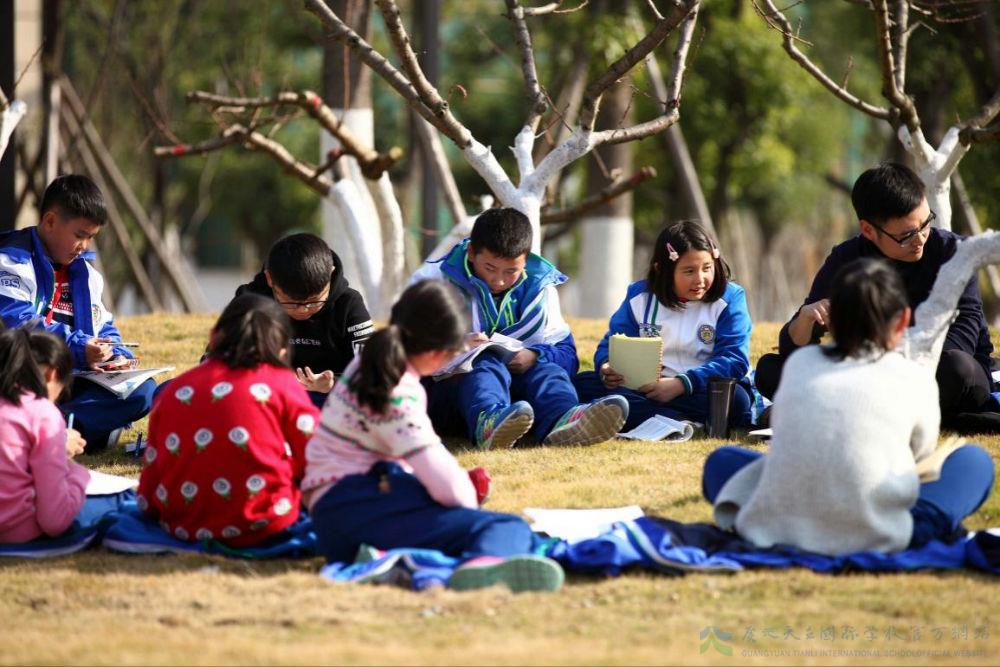 本周的阳光特别慷慨,老师们自然珍惜这难得的机会,把学生纷纷带到了教室外面。