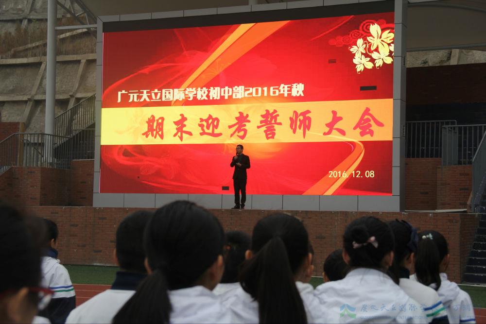 期末临近,冲刺的号角早已吹响,胜利的曙光就在前方。千里之行始于足下,百米角逐重在冲刺,抓住期末复习方能夺得最后的胜利。广元天立国际学校初中部于今日清晨在中学田径场,隆重举行“广元天立国际学校初中部2016年秋季学期期末迎考誓师大会”。