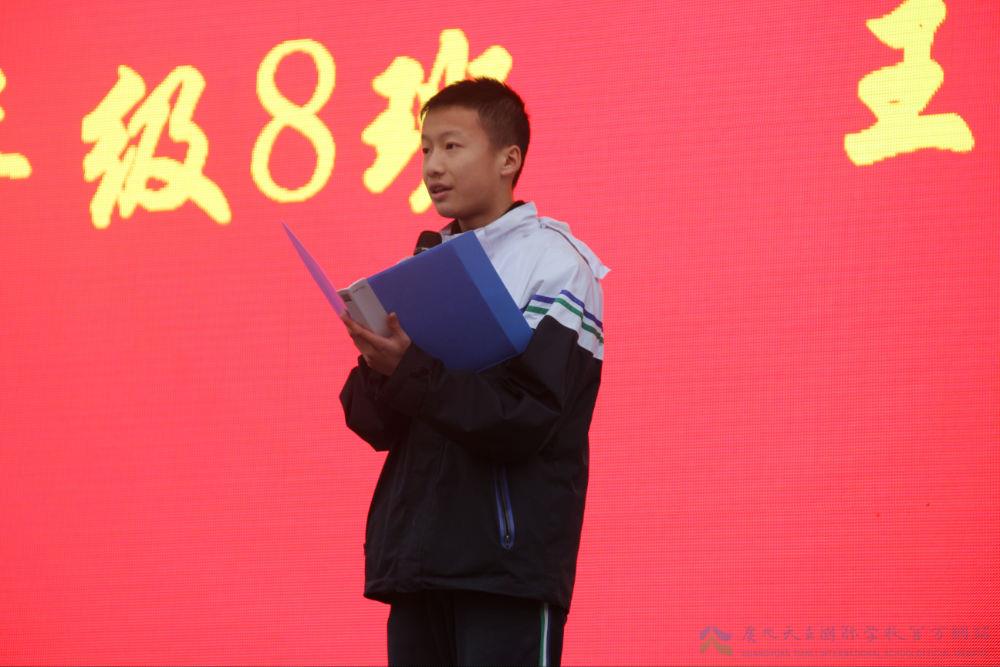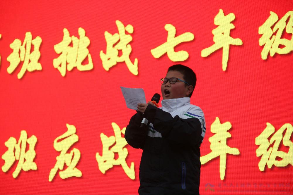 (七年级五班学生代表田浩琨宣读挑战书)