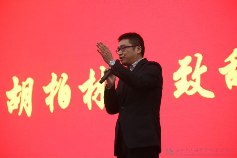 在今天这个重要的时刻,在各位英雄即将踏上征程的时刻,广元天立国际学校初中部胡柏林校长也亲临现场来为同学们加油鼓劲。