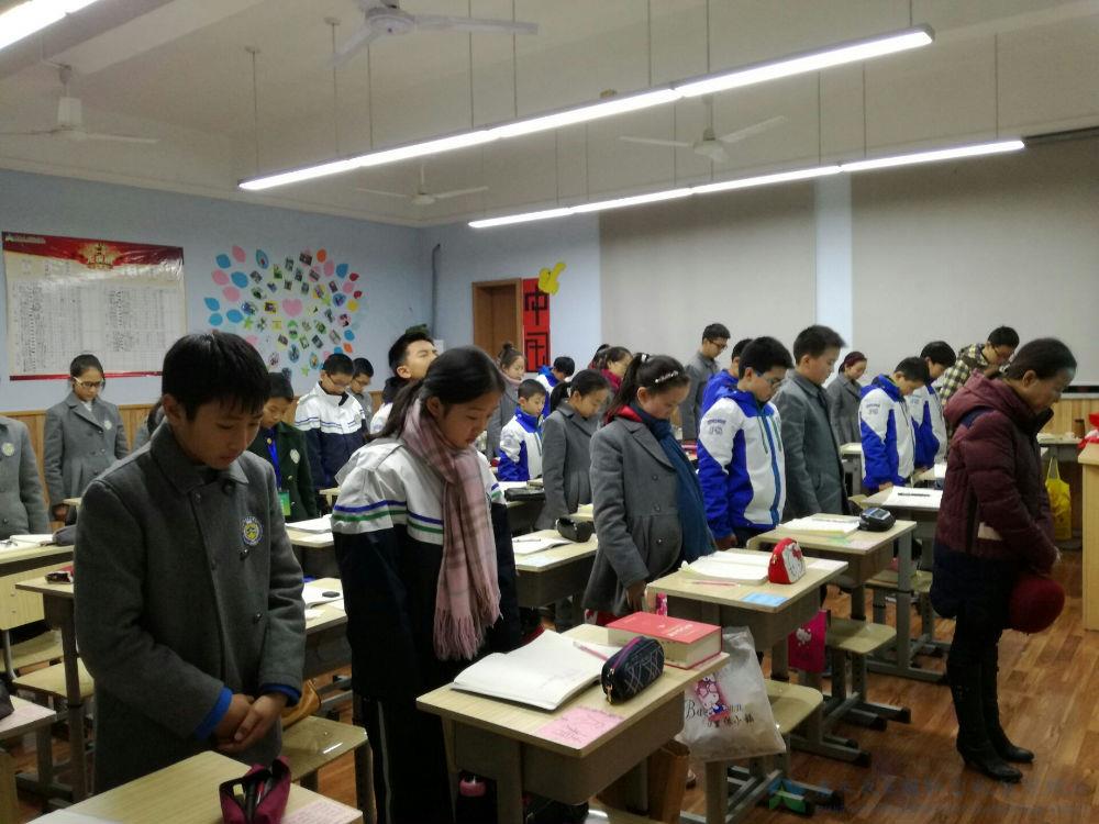 校长助理何晓玲老师带领预备2班同学为死难者默哀