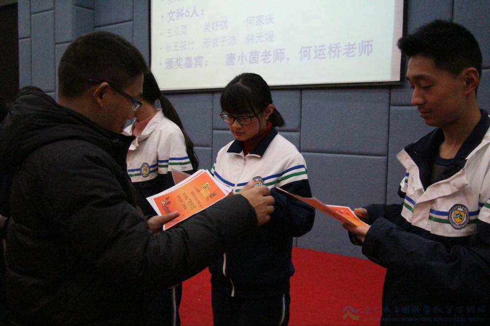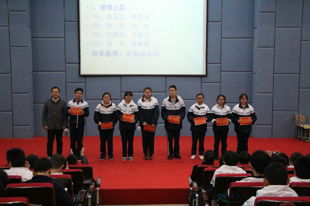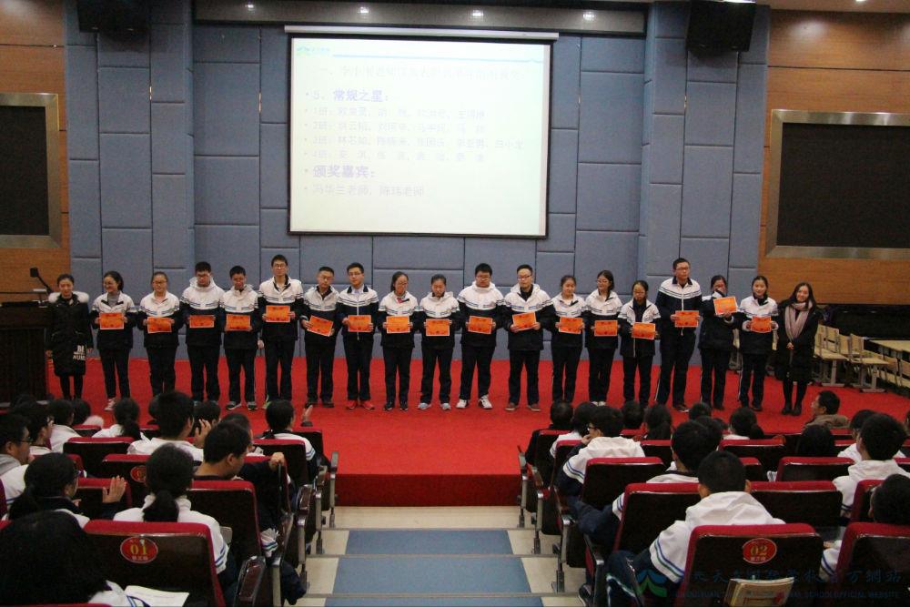 大会表彰了石家婧(文)、李炤(理)两名状元之星,杨小曼、黄宇宸、欧乃瑅、彭兰茜等40名名校之星,孙英博、郑皓文、杨潇、佘欣怡等20名希望之星,仇瀚之、张轩铭、王泓灵等23名进步之星,欧泉灵、姚云韬、林芯如、安淇等21名常规之星及赵亚文、陈俊良、杨玥等8名管理之星。