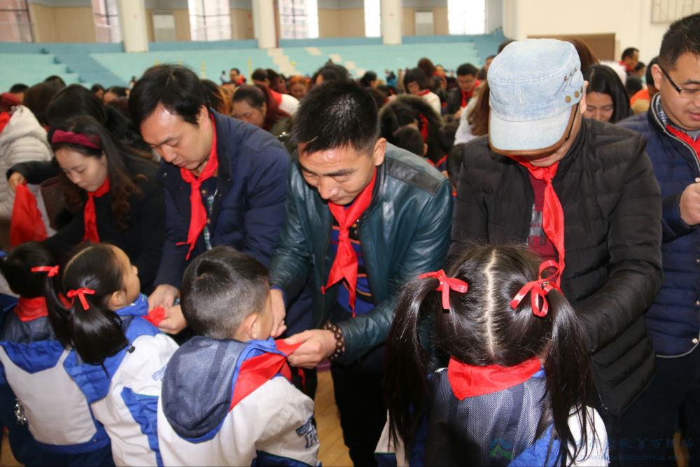 穿越红领巾时光隧道,孩子们在感受长辈们的“赤衷党情”的同时,这也更是几代人民族使命感的传承。出队旗,唱队歌,在这庄严的时刻,少先队大队辅导员邓琴老师宣布我校161名同学正式加入中国少年先锋队,成为光荣的少先队员!父母手中托起的红领巾,承载着希望和期许;铿锵有力的入队誓词,蕴含着再兴中华的责任和决心。