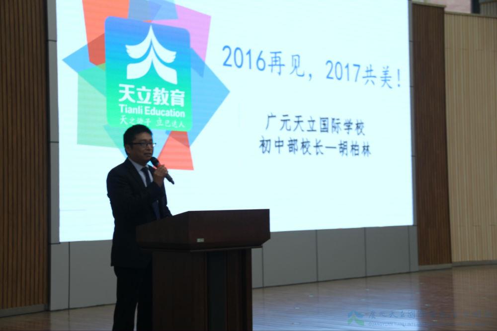 初中部胡柏林校长最后进行了总结发言。胡校长深切的谈到,作为天立的学子,要力争做到以下几点:1、永远学会善待自己。明确自己内心的追求并为之全力以赴,你们就是大家的骄傲2、永远学会珍惜家人。珍惜和家人在一起的每一分每一秒,努力为其分担,做一个有责任感的天立学子 3、积极主动,内心永远向上 4、保持健康,身体是最发本钱 5、保持阅读,视界决定你的眼界 6、乐观从容,共美2017!相信大家也会不负胡校长的殷切嘱托,努力向上,成长为一名优秀的天立学子!