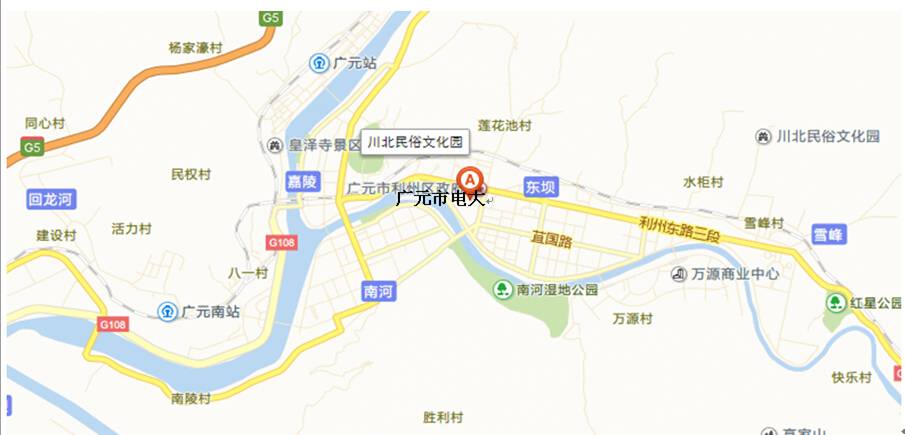 1、到校地图及路线(从广元站和广元南站到广元市电大乘坐出租车约10—15元)