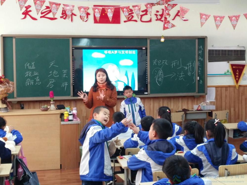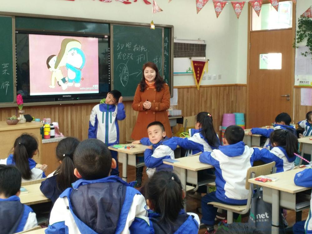 于是,在引入部分我用了这部动画片的主题曲,欢快轻松,孩子们都熟悉这首歌。当音乐一响起时,大家兴趣一下子就来了,甚至有的还能和着音乐打拍子。在介绍哆啦A梦的先进东西时,我插入了相应的视频。当动画短片播出时,孩子们又跟着短片不断思考并积极回答我的问题。