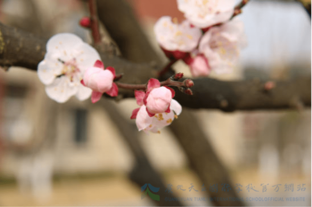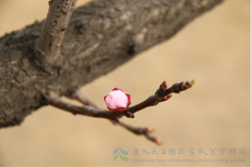 也许就在某个平常的早晨,某个不经意的的瞬间,娇滴滴的新芽儿从枝丫上探出头来,好奇地张望。桃花儿是个娇羞的少女,还未热情绽放,他们在天立的每个角落里,等你来赏。