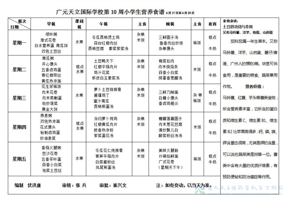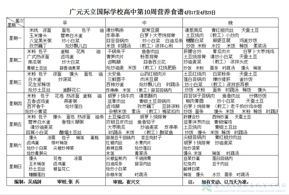 膳食中心第10周菜谱