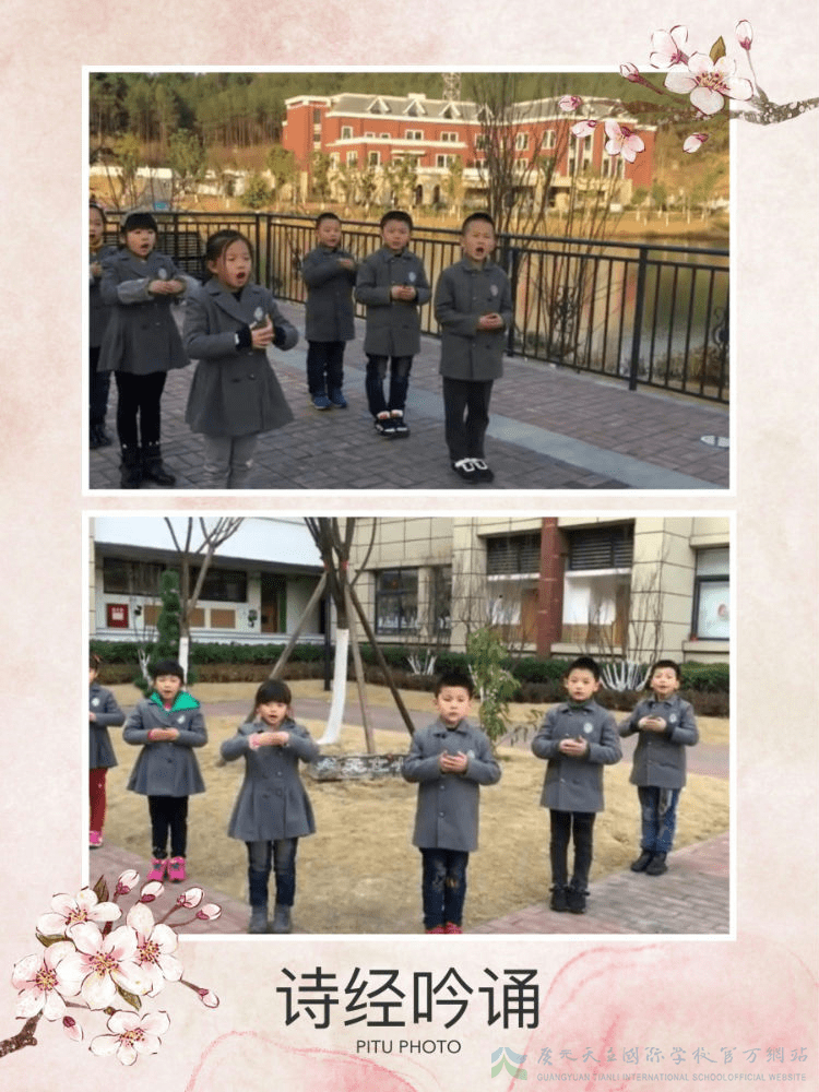 诗经选诵,是小学部的必修课。陈老师认为,读诗的孩子,气质都不会太差。这是陈老师带孩子们来到如画的校园吟唱诗经,陶冶性情的独特风情。真是:吟吟之童声,华华之园景,不美也美哉!