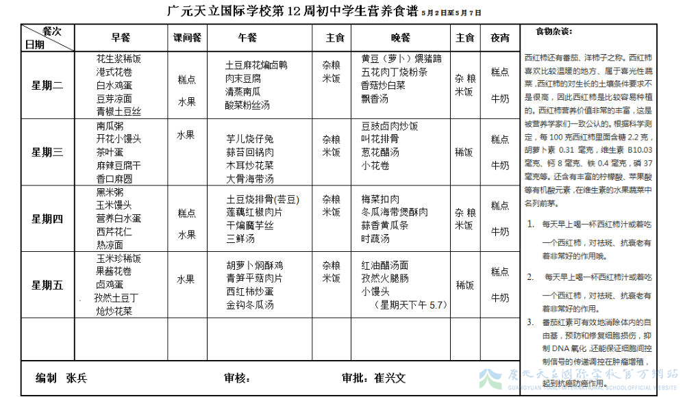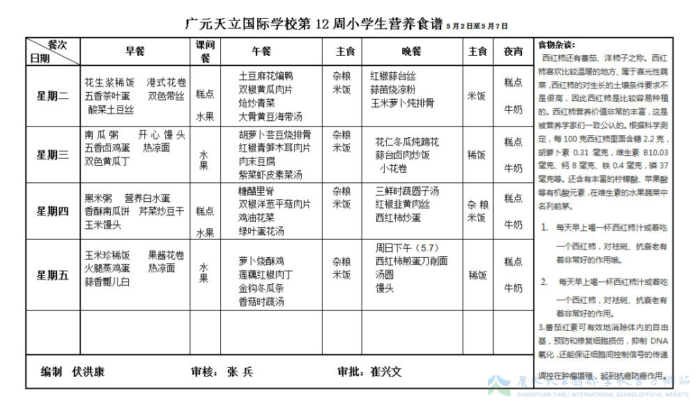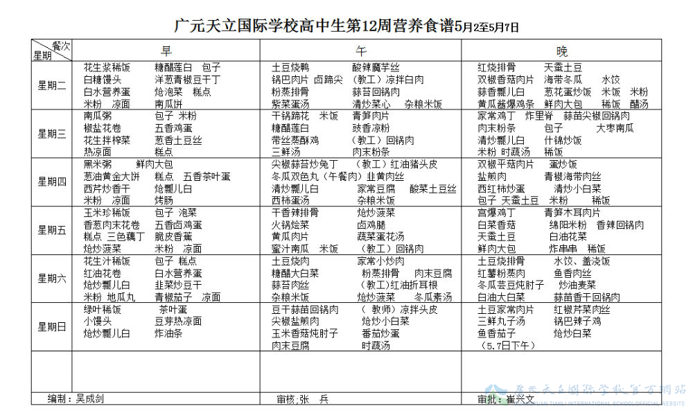 膳食中心第12周菜谱
