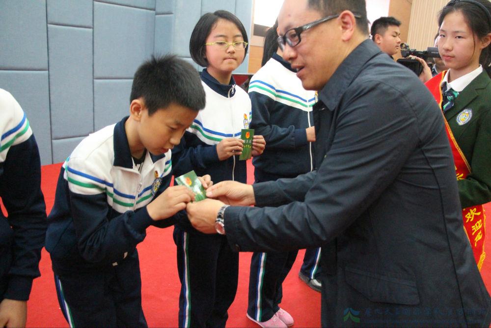 伴随大屏幕上自己名字的出现,每一位新团员都骄傲自豪地站起来走到讲台上去接受属于自己的团员证、团徽。那佩戴在每位新团员左胸前的团徽是对每位团员的信任,也给团员提出了要求。从今天开始,我们正式成为共青团的一员,从今以后,我们将积极向上,充分发挥团员模范带头作用,用实际行动来表明自己无愧于“共青团员”这个光荣称号!