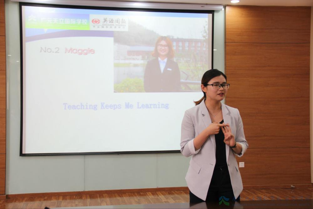 第二位演讲的青年教师是天立教育集团教坛新秀张晓凤老师(Maggie),她的演讲题目是Teaching Keeps Me Learning.