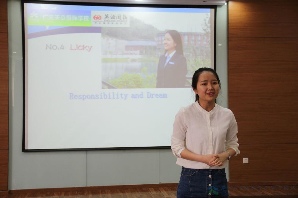 第四位演讲的青年教师是初中部优秀青年教师,多次代表学校献课的杨洪莉老师(Licky),她的演讲题目是Responsibility and Dream.