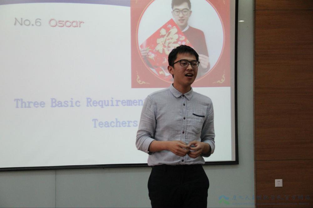 第六位演讲的青年教师是来自四川大学的四川省优秀大学毕业生兰熙翔老师(Oscar),他的演讲题目是Three Basic Requirements for Youth Teachers.