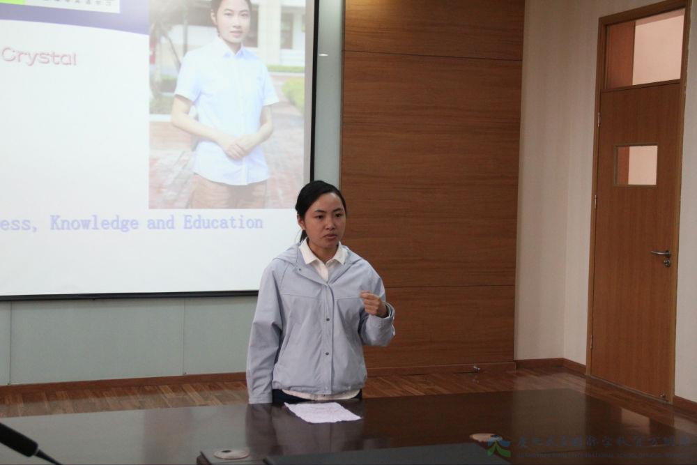 第八位演讲的青年教师是西华师大优秀毕业生、英语风采大赛省级优秀指导教师唐苗老师(Crystal),她的演讲题目是Progress, Knowledge and Education.