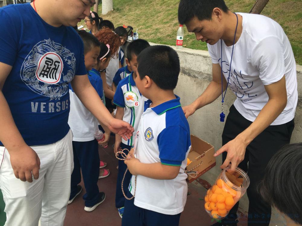 活动结束,孩子们领取自己的奖品,并跟随孩子们一起前往食堂就餐。