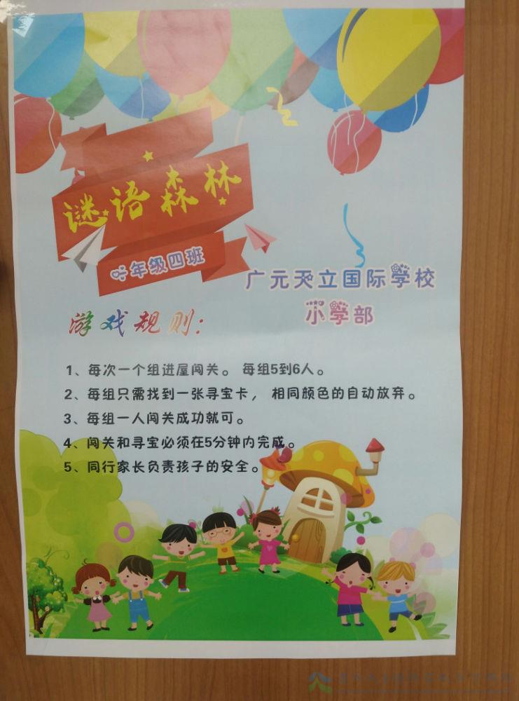 为了给孩子们带来一个不一样的六一,我们摒弃了大多数学校传统庆祝六一的汇演形式。在六一当天,许多班级的老师利用午休时间给孩子们单独准备了五花八门的礼物,并亲手写下了对每个孩子的祝福。晚上我们组织了孩子们在学校学术报告厅看了一部迪士尼电影。可六一的惊喜还没有结束呢,我们又准备了这样一场别开生面的寻宝活动。广元天立国际学校小学学生发展部的老师们在六一前的一个月就开始筹备,前期从方案的拟定,海报的设计,礼物的购买,藏宝卡的定制,寻宝图的制作,都是由老师们抽时间亲自完成的,包括发给孩子们礼物的小袋子,都是专门去网上定制,这份精心和认真,都是为了我们的孩子们可以在属于他们的日子里尽情玩耍。