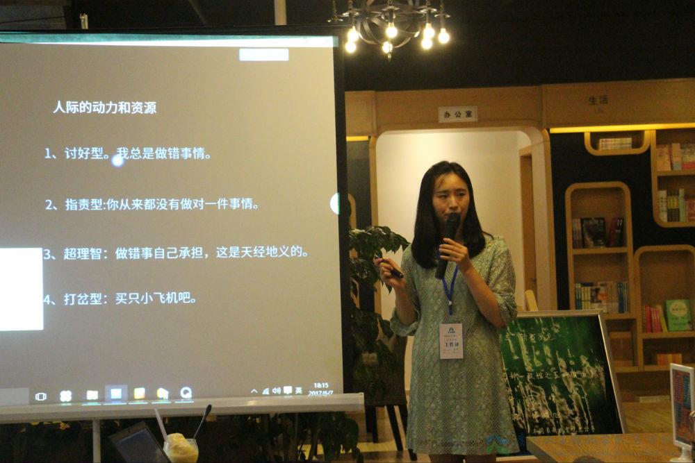 第十三周的“相约星期三”读书沙龙的主讲人是来自广元天立国际学校的心理老师何娟,她给我们带来的分享主题是“提升自己的内部一致性之五种自由”,何娟老师在开场首先从一段网络视频来给大家阐释这个陌生的名词,让家长们不会觉得内部一致性这个名词是陌生的难以接触的。
