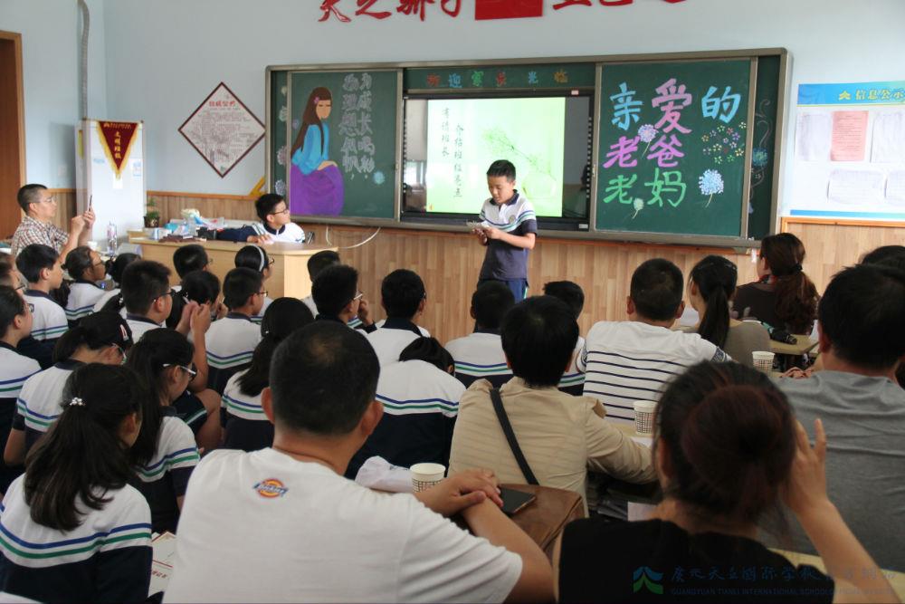 一点半,家长会准时开始。本着学生自主的原则,此次家长会均由学生全程参与设计,以学生自主展示为形式,同学们全方位多角度的为到会的各位家长展示了本班本学期所取得各类成绩,同时也让父母看到了自己在天立的成长与蜕变,由于形式新颖,内容充实,在视觉、听觉、情感等方面给家长带来了了强烈的冲击,引起了与会家长的极大兴趣,获得了他们的一致好评。