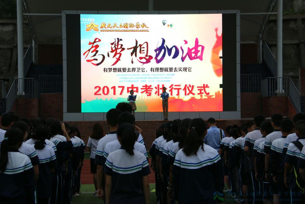 “初三加油,中考必胜”、“旗开得胜,马到功成”、“分秒必争,驰骋乾坤”……一阵阵热情洋溢铿锵有力的呐喊直冲云霄,一声声温暖美好沁人心脾的祝福响彻天立!2017年6月13日上午,广元天立国际学校校园一派节日的景象,2017届初三中考壮行会在这里隆重举行!