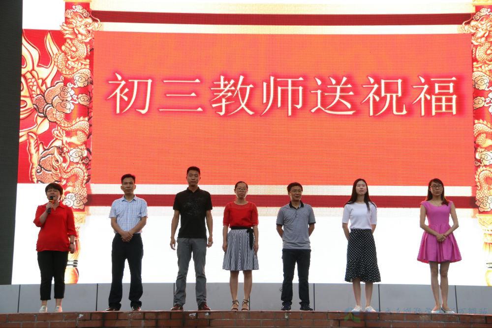 初一初二的同学们也用整齐的呐喊向学长们表达了美好的祝愿:”金榜题名,旗开得胜;挑战自我,铸就辉煌”!