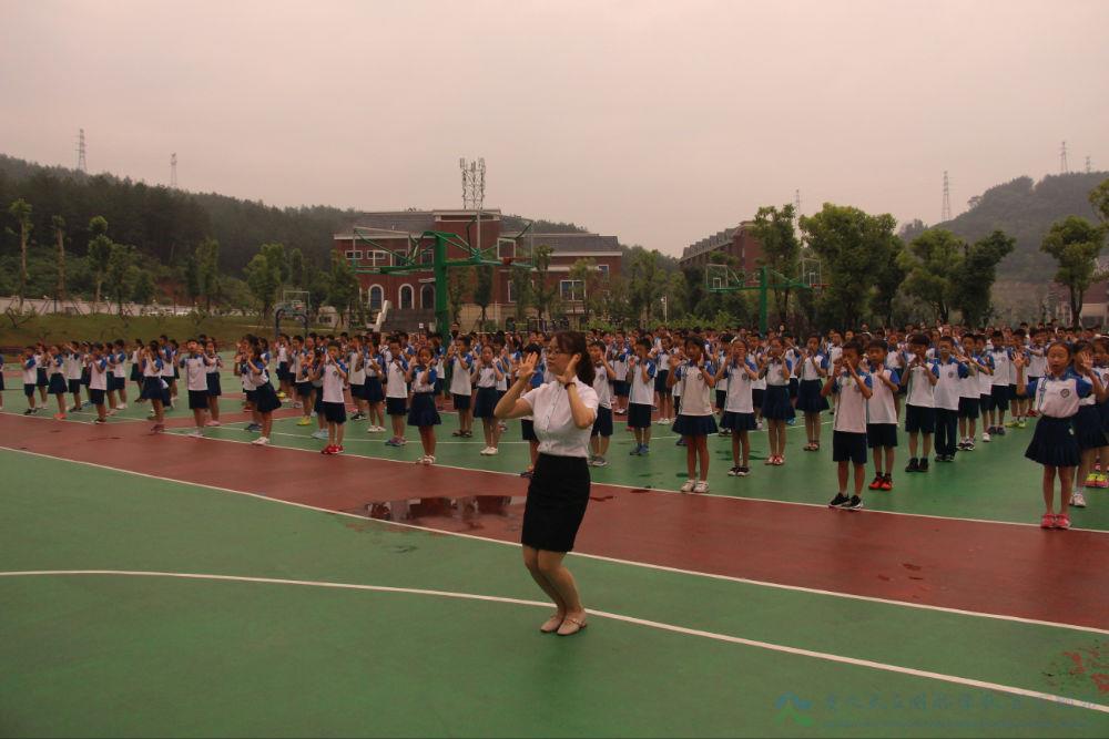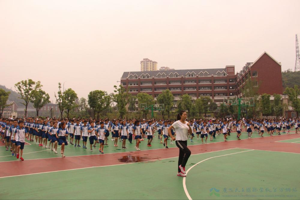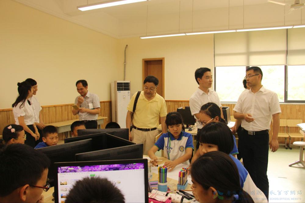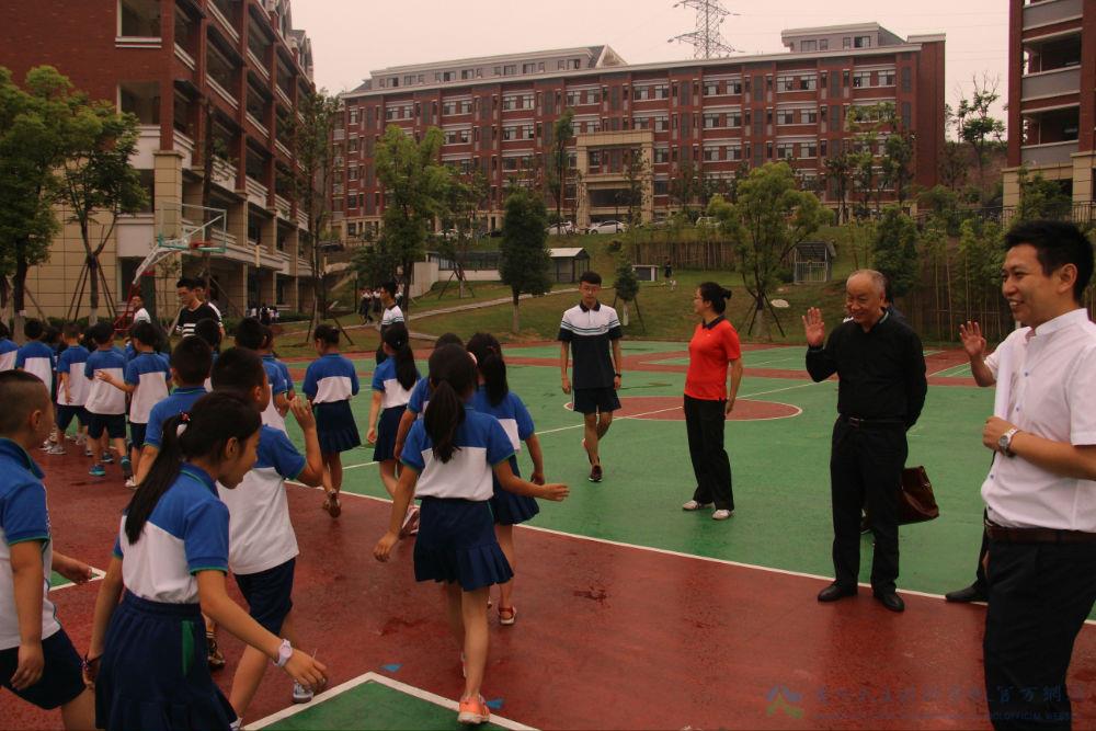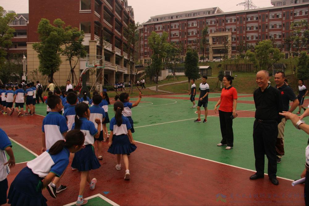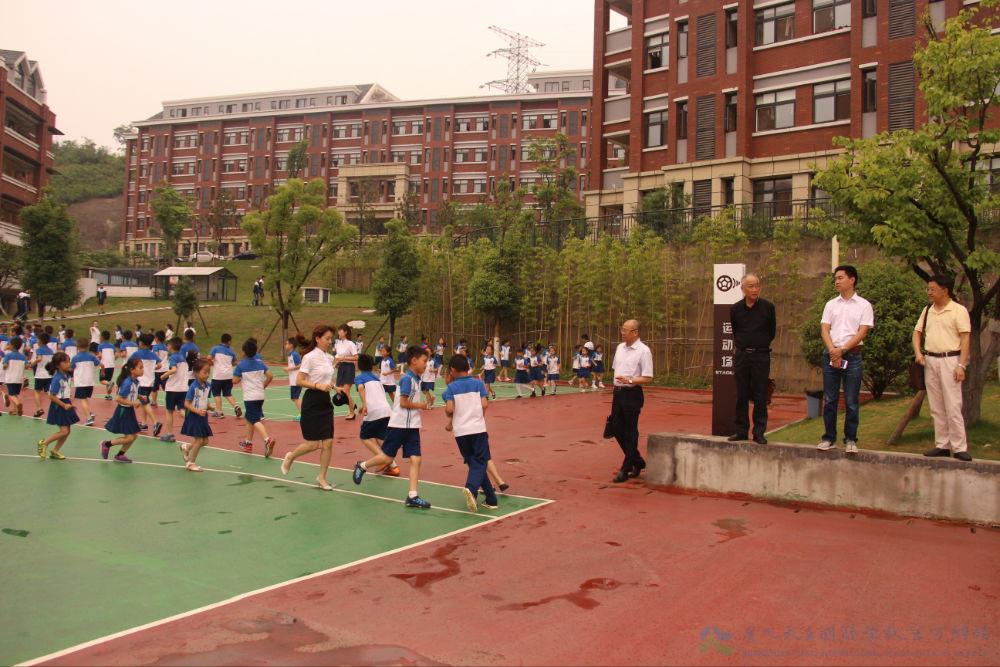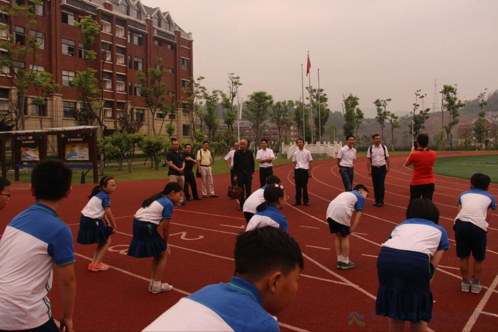 在欣赏完天鉴湖的美景后,领导们又去到了我们小学部的操场,视察孩子们的课间操。英语韵律操的俏皮可爱,孩子们做操的整齐有序,分班活动的欢乐自由,见到领导老师的文明礼仪,都让领导们赞不绝口。