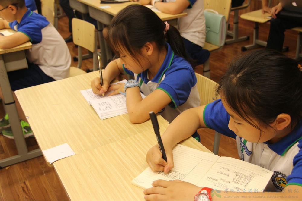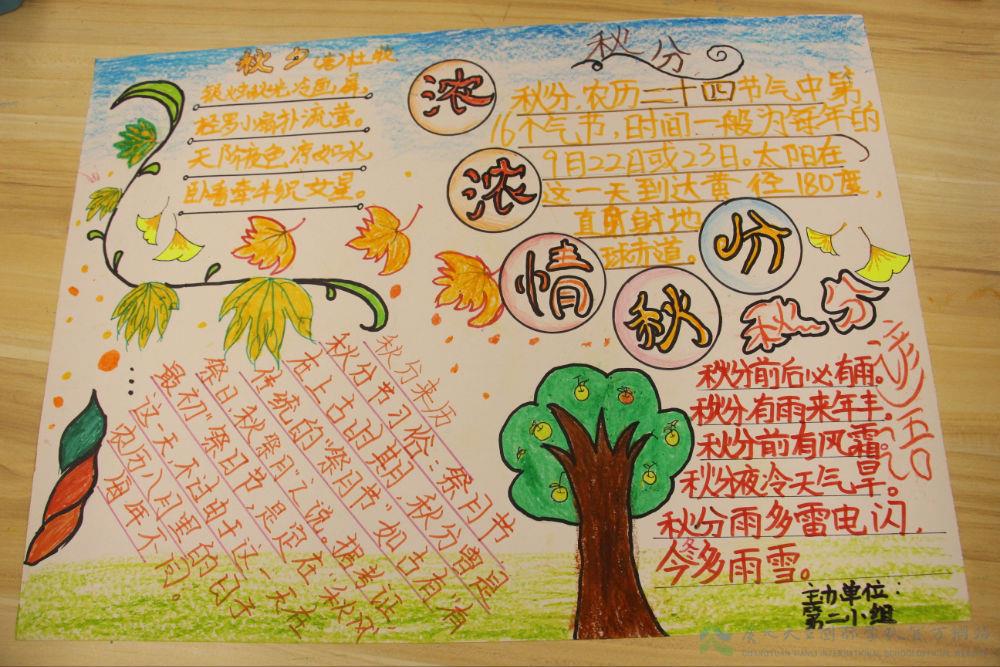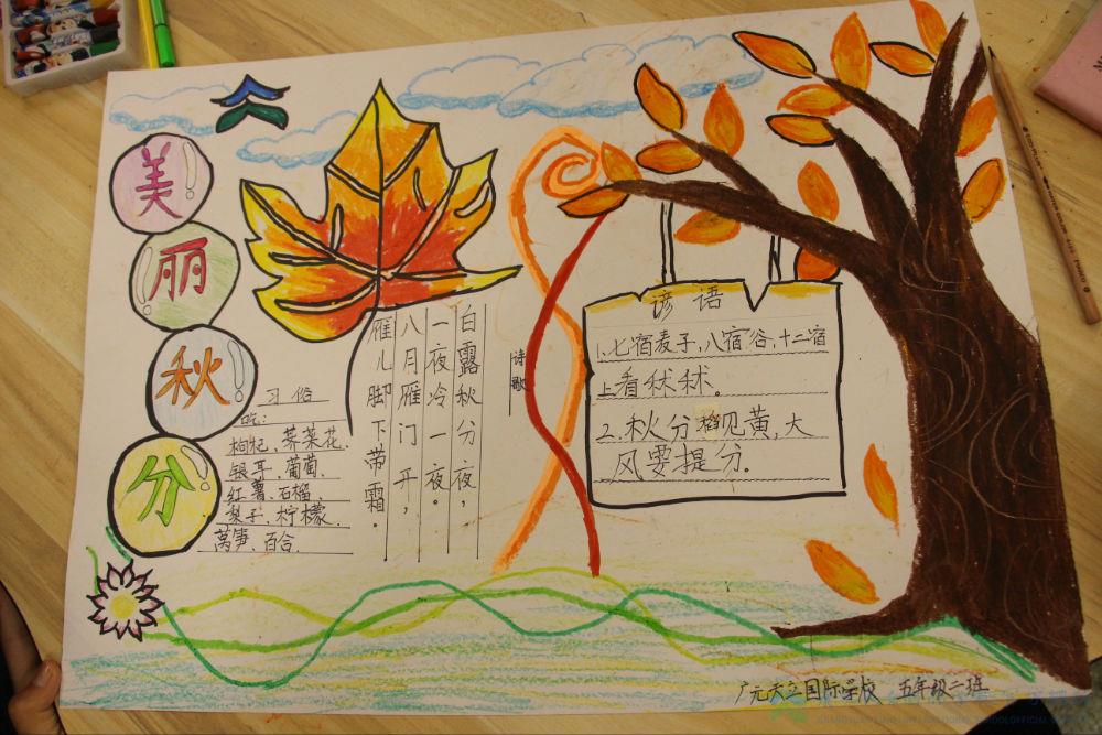 合作完成手抄报是一项锻炼小组合作能力,信息提取能力,绘画书写水平,及其他一系列综合素质的一项测试,我校五年级二班的孩子,根据随机抽取的“秋分”主题完成了几幅精妙绝伦的手抄报作品,更有孩子将天立的LOGO也画在了手抄报上,孩子们在小组合作上的井井有条得到了领导们的一致好评,在最后的总结会上杨教授专门提出提到,学生收集网络资料,专门放在Word文档里面,而不是直接誊抄,这是其他天立学校孩子们手抄板环节所没有注意到的细节,这和咱们广元天立国际学校的老师们平时对孩子们的引导和教育密不可分。