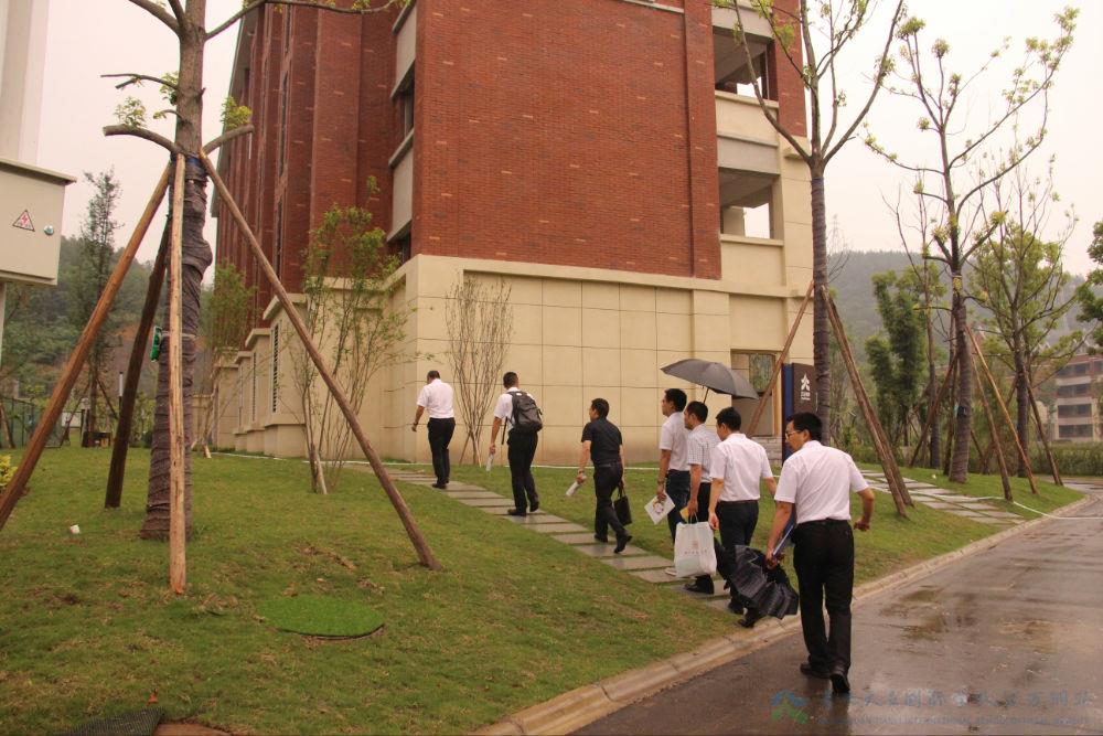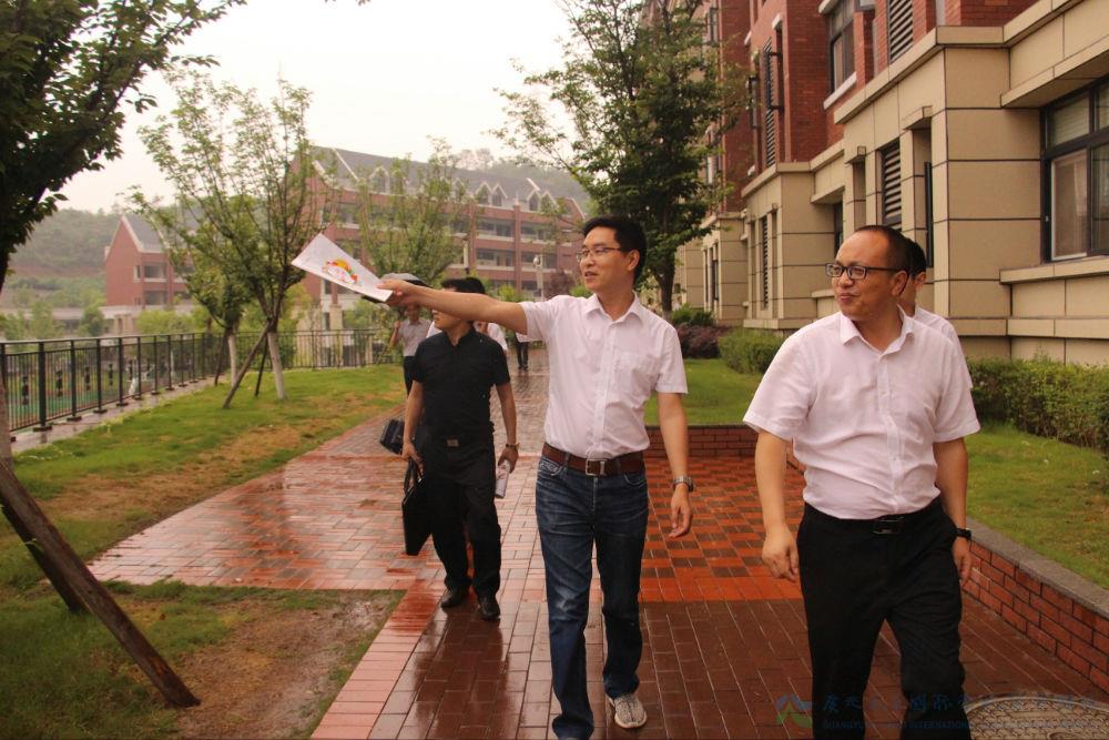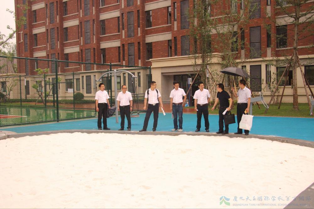 2017年6月13日,小雨淅淅沥沥,天立干净空灵。天立集团督导评估小组莅临广元天立国际学校,对我校的各项工作进行指导。此次督查小组的成员包括天立教育集团副董事长田亩、天立教育集团副总校长郭刚、泸州天立国际学校小学部校长张学文、天立教育集团特聘专家杨东教授及相关部门领导。广元天立国际学校总校长黄永贵,小学部校长俸耀旭,副校长程思文带领天立集团督导评估小组随行参观并予以解说,领导们一下车便被雨后平静而美丽的天鉴湖吸引,可能因为雨后的原因,薄薄的水汽,犹如柔顺的面纱,笼罩天鉴湖的美貌容颜,领导们纷纷驻足参观我们的天鉴湖,不禁赞叹广元天立学校的美丽风光。